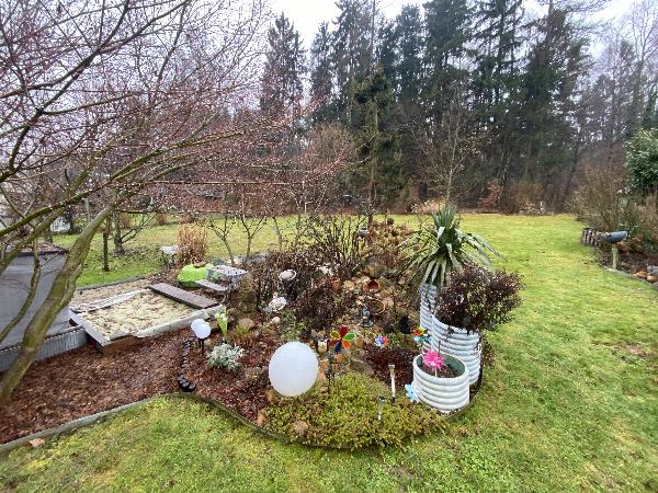 Ein echtes Highlight ist der großzügige Garten: viel Platz zum Entspannen, Spielen oder Gärtnern, perfekt für Familien, Naturliebhaber oder alle, die ihre Freizeit gerne im Grünen verbringen und am Waldrand gelegen.