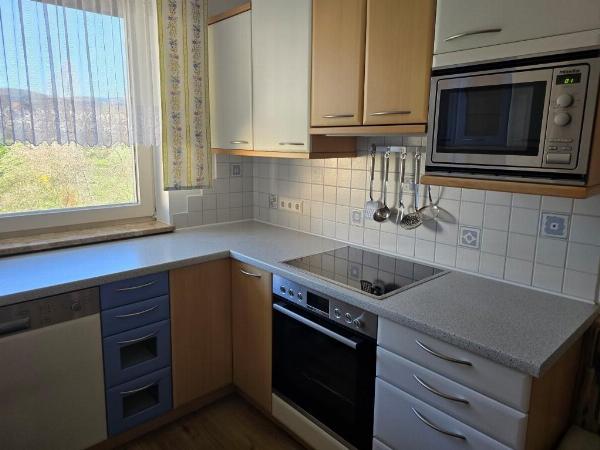 * Ausgestattete Küche mit Kühl-Gefrierkombination, Mikrowelle, Geschirrspüler und gemütlicher Sitzecke